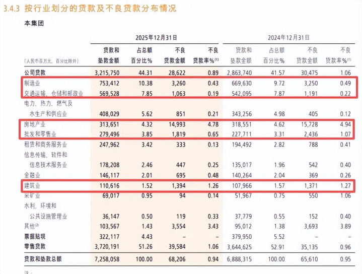 房地产业不良贷款近150亿元。2025年末,招商银行对公贷款不良达成双降,不良贷款、不良贷款率分辩为286.22亿元、0.89%,同比分辩减少18.53亿元、0.17个百分点。