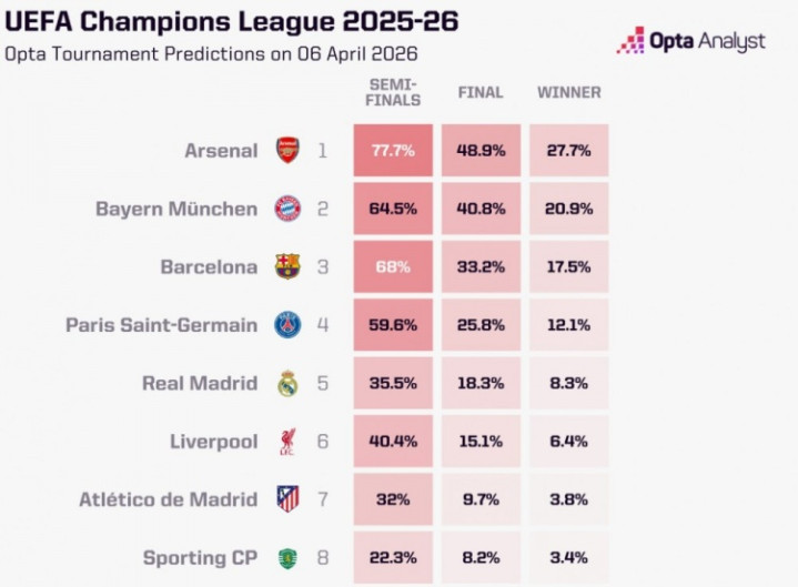 OPTA对各队晋级概率进行了瞻望开云app下载,阿森纳晋级概率高达77.7%,开云app拜仁为64.5%,巴萨为68%,而巴黎圣日耳曼则为59.6%。在这么的情况下,皇马、利物浦、马竞和葡萄牙体育是不被看好的一方。