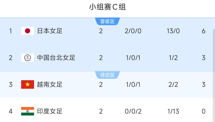 C组的小组赛将在明晚罢休,瞻望中国台北和越南队将竞争小组第2,中国队的敌手将在越南or中国台北之间产生。——惟有中国女足再胜一场,就不错取得纵贯寰球杯的经验!