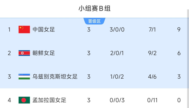 这么,本届女足亚洲杯的A组,B组的小组比赛照旧全部罢休,中国女足位列B组第1,打进7球仅丢1球,积9分,三战三胜!接下来,中国女足的敌手将会是C组的第2!