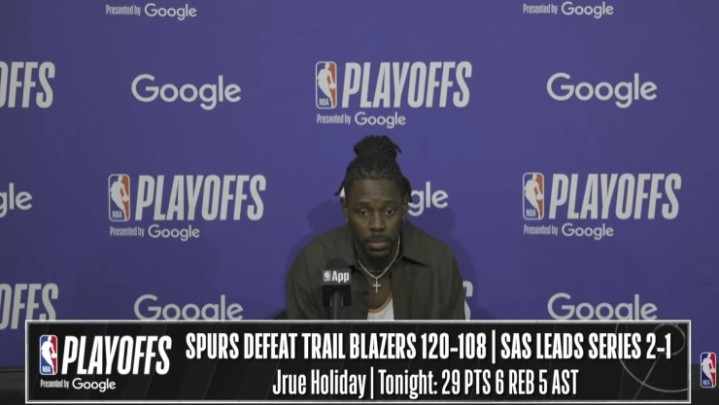 直播吧4月25日讯NBA季后赛,开采者108-120不敌马刺,大比分1-2过时。赛后朱·霍勒迪经受了媒体采访,以下为采访全文。
