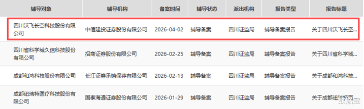 据证监会网站清晰,四川沃飞漫空科技股份有限公司(下称“沃飞漫空”)于2026年4月2日在四川证监局办理迷惑备案登记,拟初度公开导行股票并科创板上市,迷惑机构为中信建投证券,管帐师事务所为天健管帐师事务所(非凡平凡合伙)。