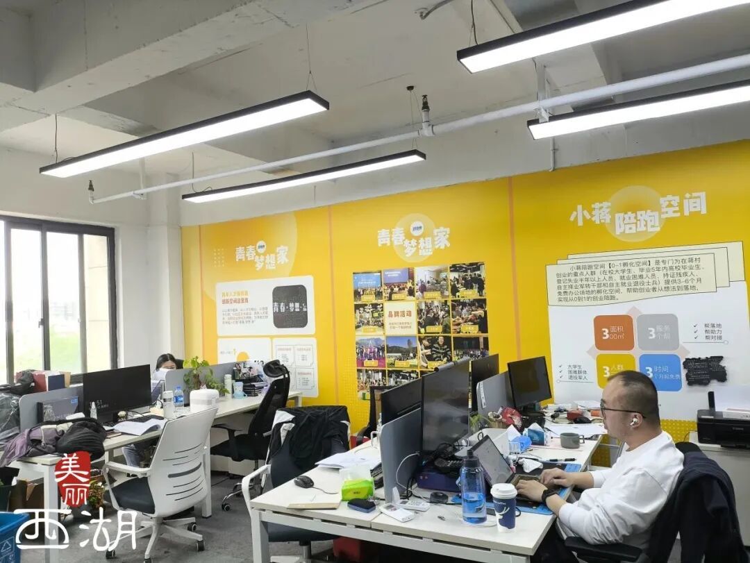 因此,他遴荐落脚“小蒋陪跑空间”,起始只图离家近、资本低。“小蒋陪跑空间”面向大学生、贫乏群体、退役军东谈主提供“帮落地、匡助力、帮对接”的三帮服务,免租三个月起。300平方米的空间里,工位、洽谈区、会议室等一应俱全。